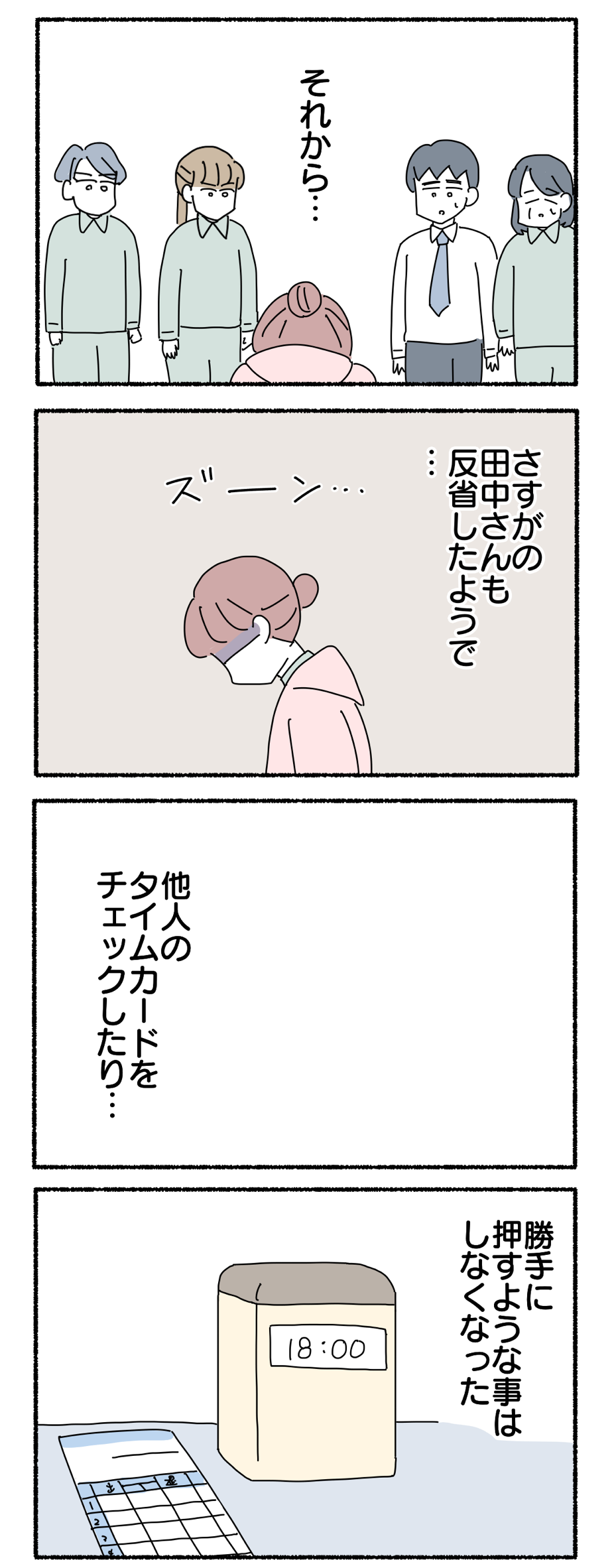 タイムカードを勝手に押されてた件【42】 2022年01月11日 前回のお話はコチラ↓ 【第42話】ですどうぞ↓続きはコチラ↓第一話はコチラ↓ 【お知らせ】友達追加するとブログの更新通知が受け取れます😊私の彼氏が新婦の隣に立っている【全20話完結】 風変わり母との付き合い方【全47話完結】新入社員とクーラーの番人【全34話完結】 上司がめちゃめちゃ横領してた話【全49話完結】 同期が電話を全く取らない件【全40話完結】 いつにも増してブスな気がする [コミック]ヤゴヴKADOKAWA2017-11-30 いつにも増してブスな気がする 2 [コミック]ヤゴヴKADOKAWA2019-02-28 「タイムカードを勝手に押されてた件」カテゴリの最新記事 タグ :#タイムカード#職場 < 前の記事次の記事 >