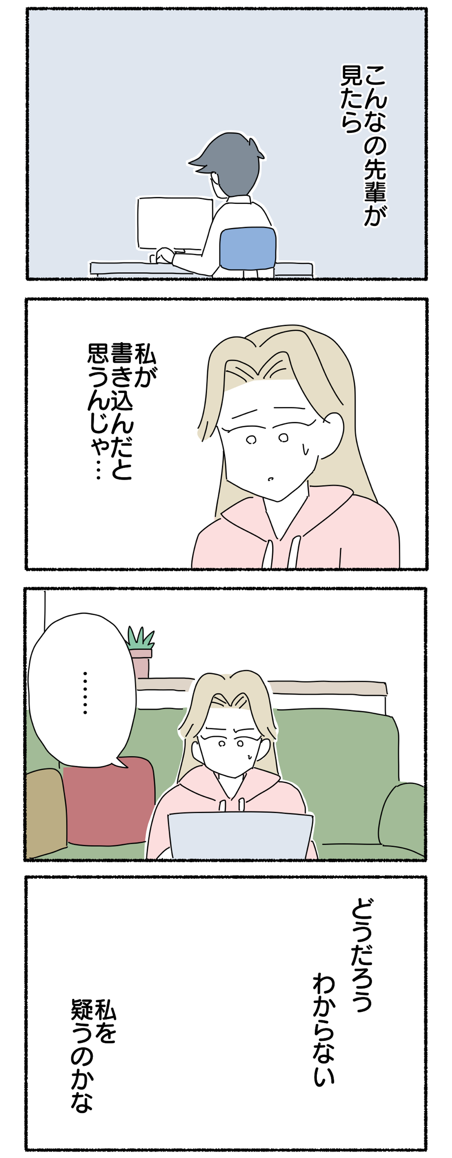 掲示板に書き込みした犯人だと疑われている件【12】 2022年01月26日 前回のお話はコチラ↓ 第12話ですどうぞ↓続きはコチラ↓ 第1話はコチラ↓ 【お知らせ】友達追加するとブログの更新通知が受け取れます😊タイムカードを勝手に押されてた件【全44話完結】 私の彼氏が新婦の隣に立っている【全20話完結】 風変わり母との付き合い方【全47話完結】新入社員とクーラーの番人【全34話完結】 上司がめちゃめちゃ横領してた話【全49話完結】 同期が電話を全く取らない件【全40話完結】 いつにも増してブスな気がする [コミック]ヤゴヴKADOKAWA2017-11-30 いつにも増してブスな気がする 2 [コミック]ヤゴヴKADOKAWA2019-02-28 「掲示板に書き込みした犯人だと疑われている件」カテゴリの最新記事 タグ :#掲示板#職場 < 前の記事次の記事 >