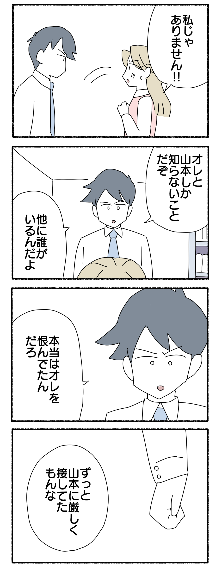 掲示板に書き込みした犯人だと疑われている件【14】 2022年01月28日 前回のお話はコチラ↓ 第14話ですどうぞ↓続きはコチラ↓ 第1話はコチラ↓ 【お知らせ】友達追加するとブログの更新通知が受け取れます😊タイムカードを勝手に押されてた件【全44話完結】 私の彼氏が新婦の隣に立っている【全20話完結】 風変わり母との付き合い方【全47話完結】新入社員とクーラーの番人【全34話完結】 上司がめちゃめちゃ横領してた話【全49話完結】 同期が電話を全く取らない件【全40話完結】 いつにも増してブスな気がする [コミック]ヤゴヴKADOKAWA2017-11-30 いつにも増してブスな気がする 2 [コミック]ヤゴヴKADOKAWA2019-02-28 「掲示板に書き込みした犯人だと疑われている件」カテゴリの最新記事 タグ :#掲示板#職場 < 前の記事次の記事 >