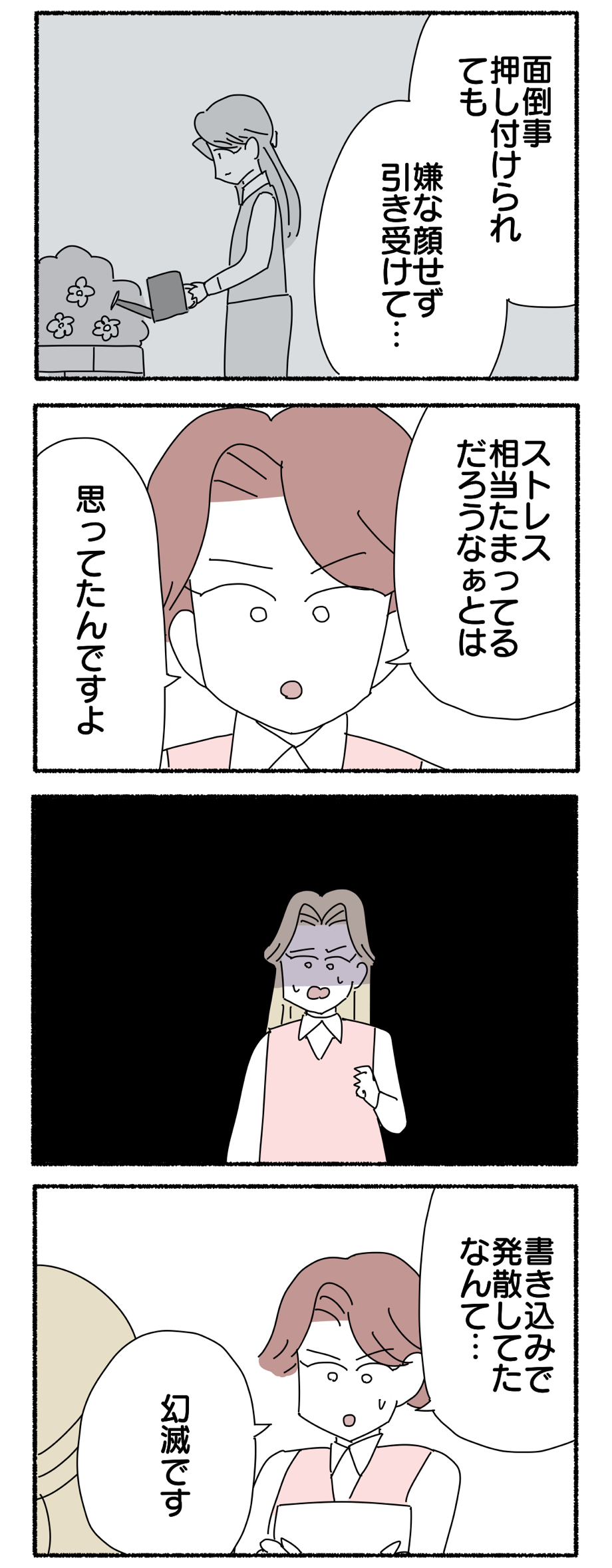 掲示板に書き込みした犯人だと疑われている件【16】 2022年01月30日 前回のお話はコチラ↓ 第16話ですどうぞ↓続きはコチラ↓ 第1話はコチラ↓ 【お知らせ】友達追加するとブログの更新通知が受け取れます😊タイムカードを勝手に押されてた件【全44話完結】 私の彼氏が新婦の隣に立っている【全20話完結】 風変わり母との付き合い方【全47話完結】新入社員とクーラーの番人【全34話完結】 上司がめちゃめちゃ横領してた話【全49話完結】 同期が電話を全く取らない件【全40話完結】 いつにも増してブスな気がする [コミック]ヤゴヴKADOKAWA2017-11-30 いつにも増してブスな気がする 2 [コミック]ヤゴヴKADOKAWA2019-02-28 「掲示板に書き込みした犯人だと疑われている件」カテゴリの最新記事 タグ :#掲示板#職場 < 前の記事次の記事 >