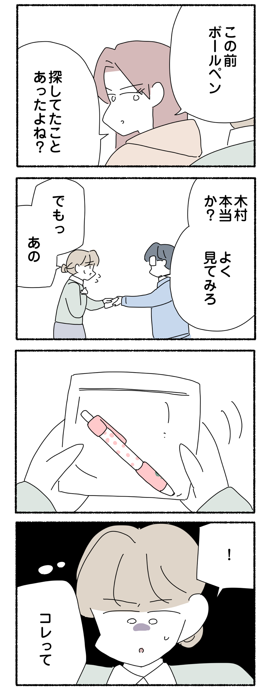 ボールペンがなくなる職場【5】 2026年02月16日 最初から読む↓ 前回のお話はコチラ↓ 第5話です↓どうぞ!!【勝手にハンコを押されてた件】↓Amazonで無料配信中です!!↓クリックするとAmazonからすぐ読めます😄 続きはコチラ↓ 【お知らせ】 友達追加するとブログの更新通知が受け取れます😊↓ピッコマからも配信されました↓ オススメ作品3選!クレーム対応したらブチ切れられた話【全41話】勝手にハンコを押されてた件【全45話完結】 誕生日会に誰も来なかった件【全50話完結】 いつにも増してブスな気がする [コミック]ヤゴヴKADOKAWA2017-11-30 いつにも増してブスな気がする 2 [コミック]ヤゴヴKADOKAWA2019-02-28 「ボールペンがなくなる職場」カテゴリの最新記事 < 前の記事次の記事 >